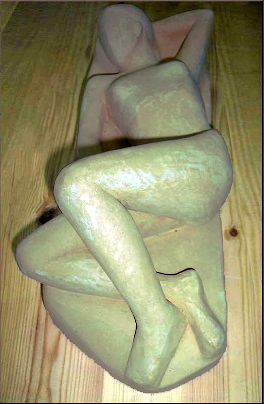 Escultora Montserrat Cantí Pijoan. Trabajo realizado para hacer una escultura homenaje al "Turista" Comentario: La figura es la representación genérica de cualquier turista de las que en verano vienen a España a gozar de sus playas y su sol.